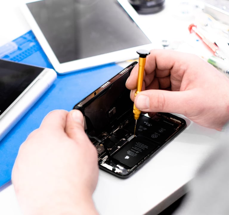 we provide battery replacement service for mobile devices, using only genuine parts to ensure optimal performance and a longer battery life. Our skilled technicians will replace your device's battery quickly and efficiently.
